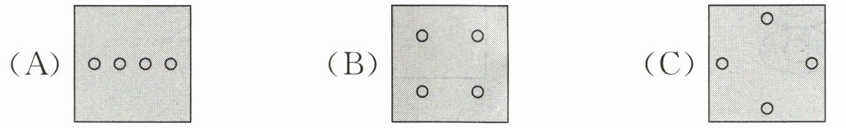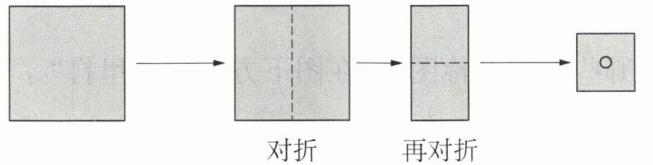 (3) 将一个正方形对折两次,如图所示,并在中央打孔再将它展开,得到的图案是( )。