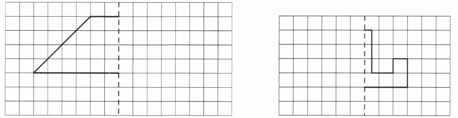 6 根据已画图形画出它们的另一半,使它们成为轴对称图形。