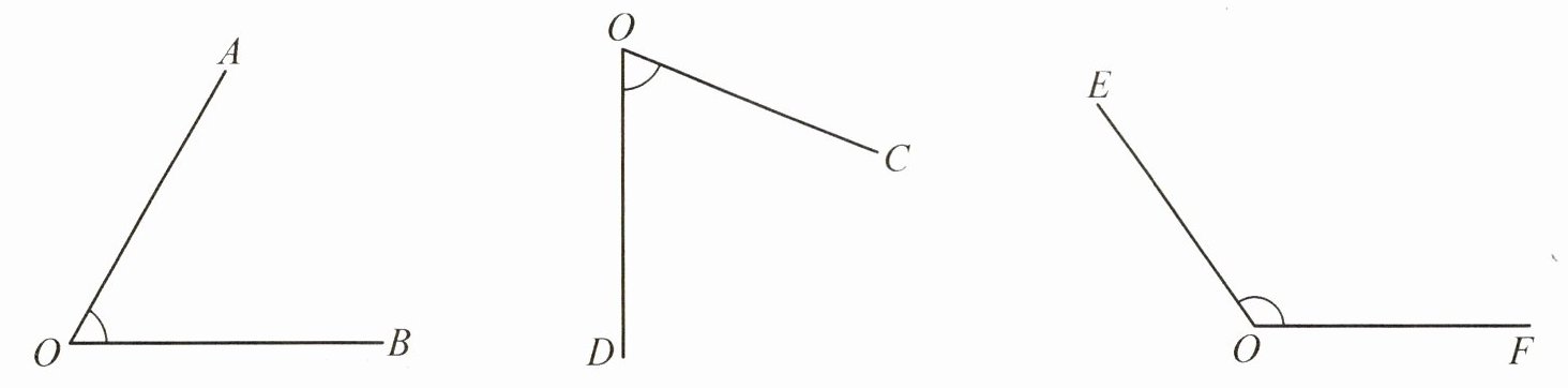 $\angle AOB= ( )$ $\angle COD= ( )$ $\angle EOF= ( )$