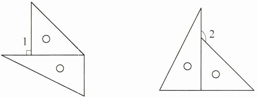 5 下面两幅图都是由同一副三角尺拼成的,$\angle 1$ 和 $\angle 2$ 分别是多少度?