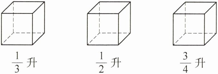 (2) 下面三个正方体容器的容量正好都是 1 升,请你分别标出 $\frac{1}{3}$升、$\frac{1}{2}$升、$\frac{3}{4}$升的位置。