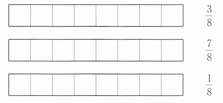 3 分别涂出$\frac{3}{8}$、$\frac{7}{8}和\frac{1}{8}$,并将这 3 个分数按从小到大的顺序排列。