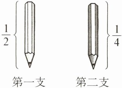 8 两支铅笔用了一段时间后,剩下的同样长(如图),原来哪支铅笔长一些?
