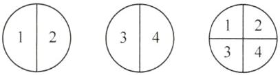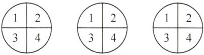 (4) 将一个圆对折再对折,得到的每一份是这个圆的(——)。