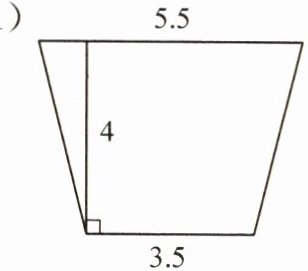 (1)$(5.5+3.5)× 4÷ 2=18(\text{cm}^2)$ (2)$(5+8)× 3.4÷ 2=22.1(\text{cm}^2)$ (3)$(9+15)× 8÷ 2=96(\text{cm}^2)$
