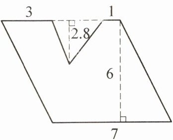 (每小题列式均不唯一)(1)5×5+(8+5+8)×(9-5)÷2=67(cm²) (2)7×6-(7-3-1)×2.8÷2=37.8(cm²) (3)4×3.5+(1.5+3.5)×(10.8-4)÷2=31(cm²) (4)(10+12)×12÷2=132(cm²)