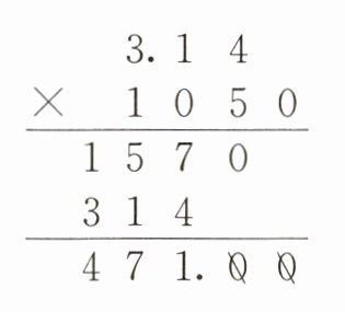 $\begin{array}{r}3.14 \\× 1050 \\\hline1570 \\314 \\\hline471.00 \\\end{array}\\ $
