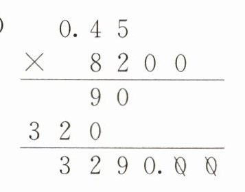 $\begin{array}{r}0.45 \\× 8200 \\\hline90 \\320 \\\hline3290.00 \\\end{array}\\ $