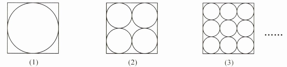 (5)如图,在一些相同的正方形内分别排列着一些等圆,请观察后填表。