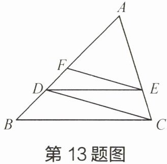 13 如图,在$\triangle ABC$中,$DE// BC$,$EF// DC$,求证:$AD^{2} = AB\cdot AF$。