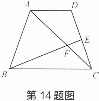 14 如图,在梯形$ABCD$中,$AD// BC$,$BC = 2AD$,点$E为边DC$的中点,$BE交AC于点F$。求: