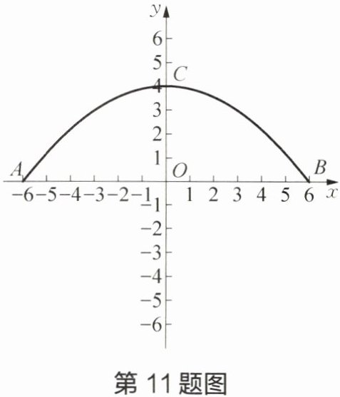 11 如图,河上有一座抛物线形状的桥洞,已知桥下的水面离桥拱顶部 4 米时,水面宽$AB$为 12 米,如图建立直角坐标系。