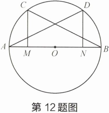 12 如图,在$\odot O$中,$M$、$N分别是直径AB$上的两点,且$AM = BN$,$CM ⊥ AB于点M$,$DN ⊥ AB于点N$,求证:$AD = BC$。