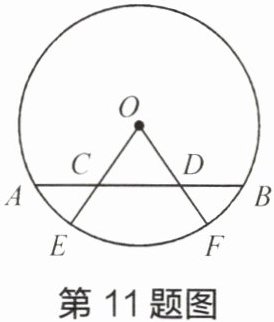 11 如图,已知$AB是\odot O$的弦,且$AC = BD$,半径$OE$、$OF分别过C$、$D$两点。