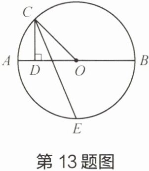 13 如图,已知$AB是\odot O$的直径,$C是\odot O$上的一点,$CD\perp AB于点D$,$CE平分\angle DCO$,交$\odot O于点E$,求证:$\overset{\frown}{AE}= \overset{\frown}{BE}$。