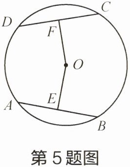 5 如图,在 $ \odot O $ 中, $ \overset{\frown}{AB} = \overset{\frown}{CD} $, $ OE \perp AB $, $ OF \perp CD $,垂足分别为点 $ E $、$ F $,已知 $ \odot O $ 的半径为 $ 5 cm $, $ OF = 4 cm $,那么 $ OE = $