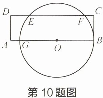 10 如图,矩形ABCD与圆心在AB上的⊙O交于点G、B、F、E,GB= 8cm,AG= 1cm,DE= 2cm,则BC=