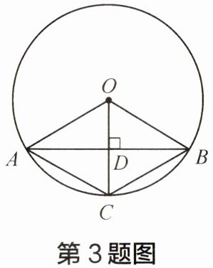 3 如图,已知在⊙O中,AB是弦,半径OC⊥AB,垂足为点D,要使四边形OACB为菱形,还需要添加一个条件,这个条件可以是(