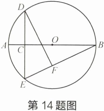 14 已知⊙O的半径为5,点C在直径AB上。过点C作⊙O的弦DE⊥AB,过点D作直线EB的垂线DF,垂足为点F。设AC= x,EF= y。