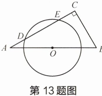 13 如图,在$Rt\triangle ABC$中,$\angle C= 90^{\circ}$,$\angle A= 30^{\circ}$,$AB= 8$,$\odot O$的半径为 3,圆心$O在AB$边上。如果$\odot O与BC$相离,与线段$AC交于点D和点E$($D$、$E$两点不重合),设$AO= x$,$DE= y$。求$y与x$之间的函数解析式,并写出定义域。