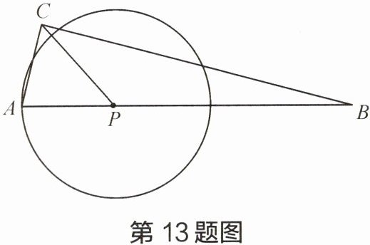13 如图, 在$Rt\triangle ABC$中,$\angle ACB= 90^{\circ}$,$AC= 4$,$\cos A= \frac{1}{4}$, 点$P是边AB$上的动点, 以$PA为半径作\odot P$。若$\odot C的半径等于\sqrt{2}$, 且$\odot P与\odot C$的公共弦长为 2, 求$AP$的长。