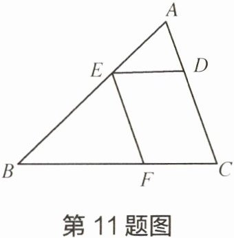 11 如图,在 $ \triangle ABC $ 中,点 $ D $、$ E $、$ F $ 分别在边 $ AC $、$ AB $、$ BC $ 上,且 $ DE = 2.8 $, $ AE = 3 $, $ BE = 6 $, $ \frac{AD}{AC} = \frac{1}{3} $。