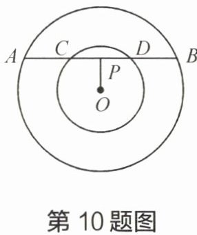 10 如图,同心圆中,大圆的弦AB被小圆三等分,OP为弦心距,如果$PD= 2cm$,那么BC的长为