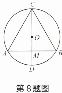 8 如图,已知CD是$\odot O$的直径,AB是弦,$CD⊥AB$于点M,则可得$AM=$