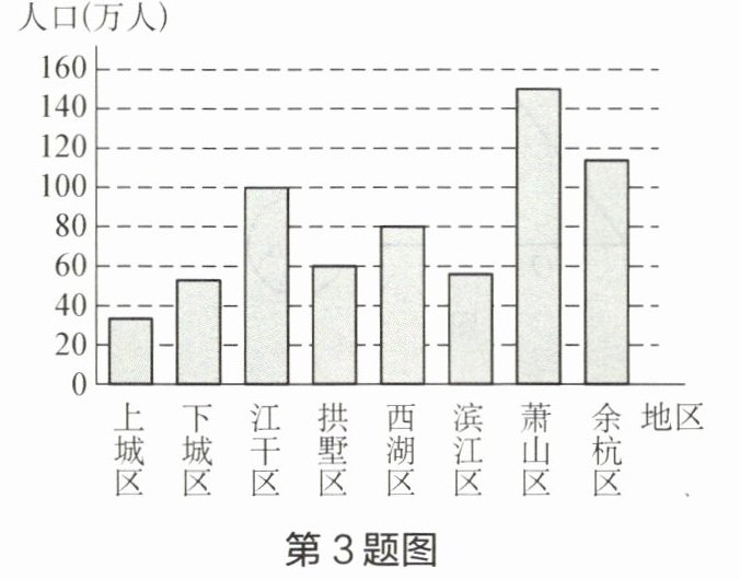 3 如图是某年杭州市区人口的统计图,根据统计图得出的下列判断,结论正确的是(