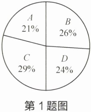 1 如图是某校的艺术节四个弦乐节目 $ A $、$ B $、$ C $、$ D $ 受欢迎程度的扇形统计图,则最受欢迎的节目是(