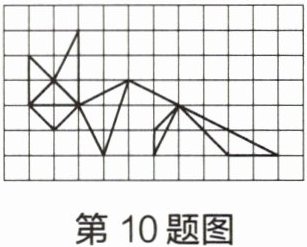 10 如图,在 $ 12 × 7 $ 的正方形网格中有一个可爱的小狐狸图案,其中的相似三角形有