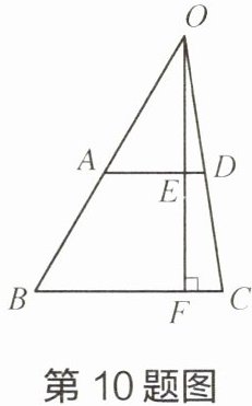 10 如图,在梯形 $ABCD$中,$AD// BC$,$AD = 32cm$,$BC = 60cm$,延长两腰 $BA$、$CD$交于点 $O$,$OF\perp BC$,交 $AD$于点 $E$,$EF = 35cm$,则 $OF = $