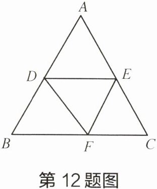 12 如图,等边三角形ABC边长是7厘米,点D、E分别在AB和AC上,且$\frac {AD}{AE}= \frac {4}{3}$,将$\triangle ADE$沿DE翻折,使点A落在BC上的点F上。