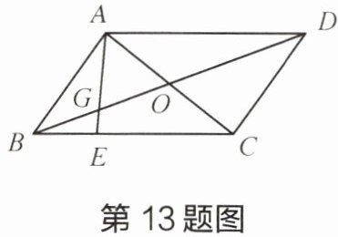 13 如图,在平行四边形$ABCD$中,对角线$AC$、$BD相交于点O$,点$E在边BC$上,$AE与BD相交于点G$,$AG:GE= 3:1$。