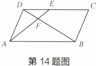 14 如图,在平行四边形$ABCD$中,$E为DC$上一点,$AE与BD交于点F$,$DE:EC= 2:3$。