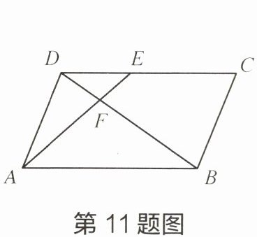 11 如图,在平行四边形 ABCD 中,E 为 DC 上一点,AE 与 BD 交于点 F,DE:EC= 2:3。如果$\overrightarrow{AD}= \vec{a},\overrightarrow{AB}= \vec{b},$那么用$\vec{a}、$$\vec{b}$表示向量$\overrightarrow{AF}$为