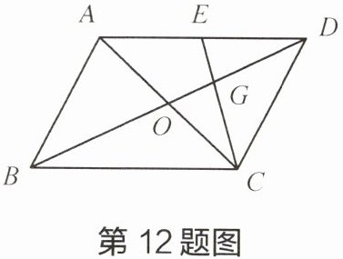 12 如图,已知$□ ABCD$的对角线交于点 O,点 E 为边 AD 的中点,CE 交 BD 于点 G。