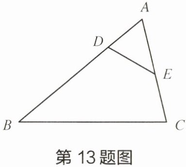 13 如图,已知:$\triangle ABC$中,点 D、E 分别在 AB、AC 上,$AB= 9,AC= 6,AD= 2$,$AE= 3$。