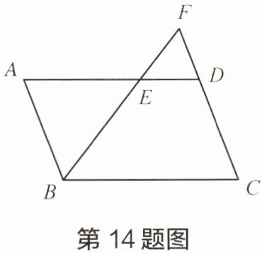 14 如图,在平行四边形 ABCD 中,点 E 在边 AD 上,且$AE= 2ED$,联结 BE 并延长交边CD 的延长线于点 F,设$\overrightarrow{BA}= \vec{a},\overrightarrow{BC}= \vec{b}$。