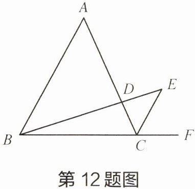 12 如图,已知$\triangle ABC$,点$D在边AC$上,且$AD= 2CD,AB// EC$,设$\overrightarrow {BA}= \overrightarrow {a},$$\overrightarrow {BC}= \overrightarrow {b}$。