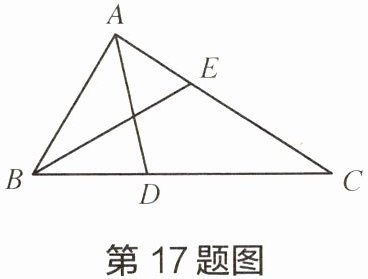 17 如图,在△ABC中,AD、BE是△ABC的角平分线,BE= CE,AB= 2,AC= 3。
