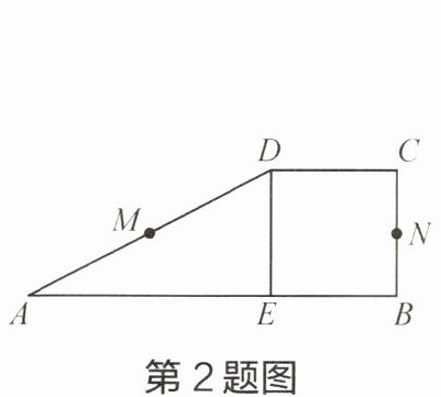 2 如图,$M$、$N分别是直角梯形ABCD两腰AD$、$CB$的中点,$DE\perp AB于点E$,将$\triangle ADE沿DE$翻折,若$M与N$恰好重合,则$AE:BE$等于(
