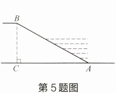 5 如图,河堤横断面如图所示,堤高$BC= 6$米,迎水坡AB的坡比为$1:\sqrt {3}$,则AB的长为(