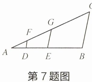 7 如图,$DF// EG// BC$,$AF:FG:GC = 1:2:3$,若$AB = 9$,则$DB = $