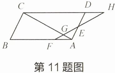 11 如图,在$□ ABCD$中,$E是AD$的中点,点$F在AB$上。延长$FE与CD相交于点H$,若$FG = 1$,$GE = 3$,$AG = 2$,求$CG$的长。