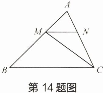 14 如图,在 $ \triangle A B C $ 中,$ B C = 4 $,$ \angle B = 45 ^ { \circ } $,$ A B = 3 \sqrt { 2 } $,$ M $、$ N $ 分别是 $ A B $、$ A C $ 上的点,$ M N // B C $。设 $ M N = x $,$ \triangle M N C $ 的面积为 $ S $。