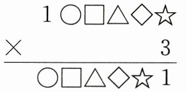 $\begin{array}{r}1◯□\triangle\lozenge☆\\×\ \ \ \ \ \ \ \ \ \ \ \ \ \ \ 3\\\hline◯□\triangle\lozenge☆1\end{array} $