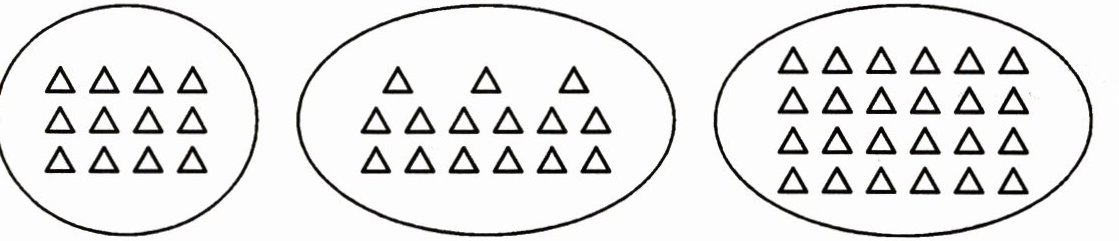 24 请你把下面三个图中的△各圈出$\frac {1}{3}$,三次圈出的△的个数( )(填“一样”或“不一样”),理由是:( )。