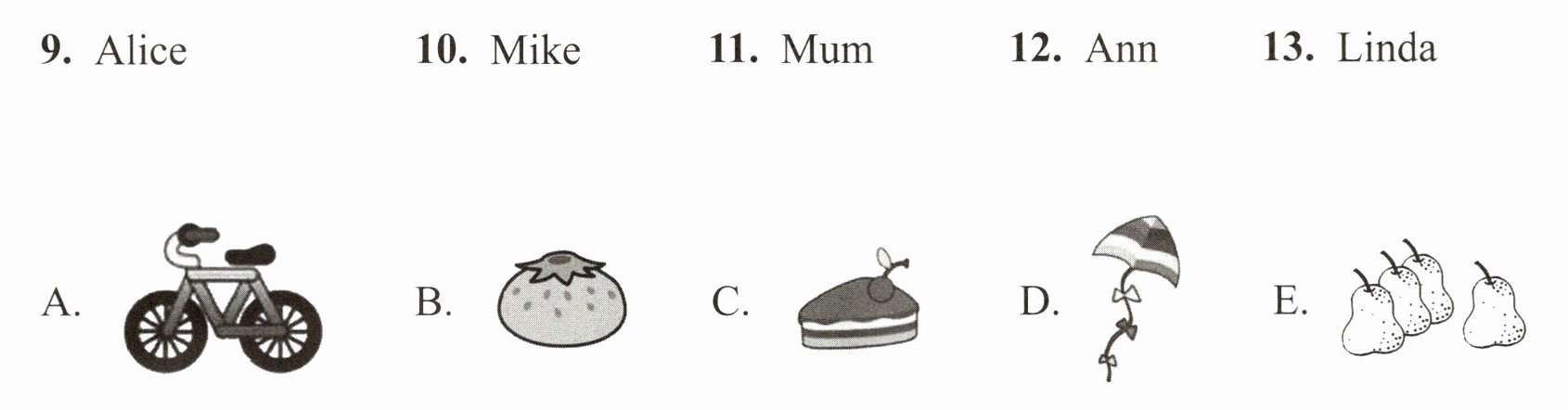 9. Alice 10. Mike 11. Mum 12. Ann 13. Linda