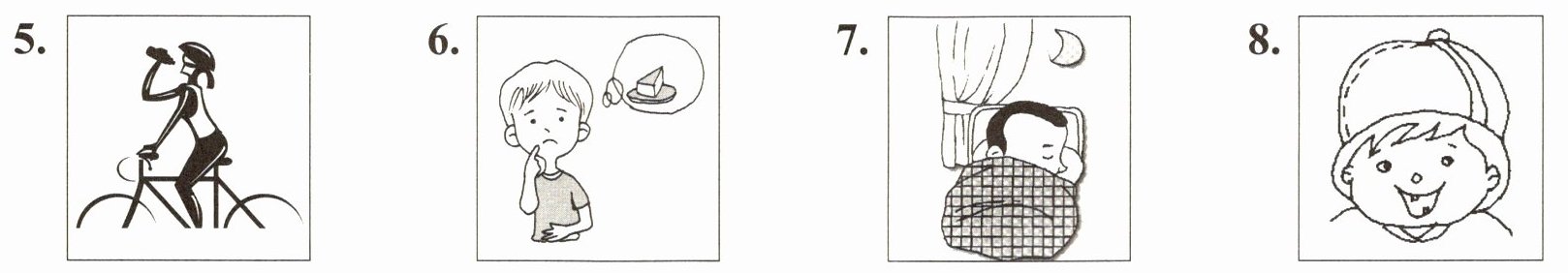 5. thirsty 6. hungry 7. tired 8. feel